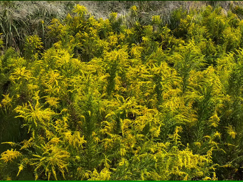 道すがら、背高泡立草が勢いよく咲き誇り、黄金の房を風に揺らしていました。