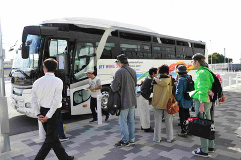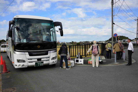 朝9時15分、泉館に集合した参加者はマイクロバスに乗り込み、9時30分に出発。途中、下飯田駅でメンバーをピックアップし、一行は一路、大磯へと向かいました。