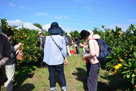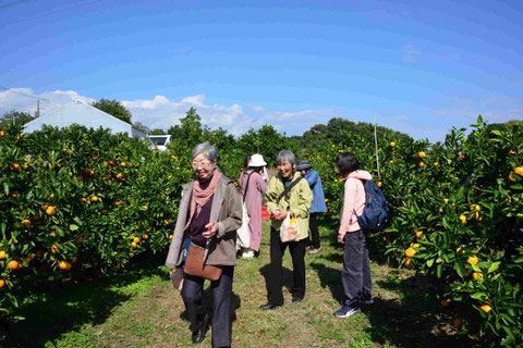 この後は昼食が待っているため、「ほどほどにね」と声をかけ合いながら、皆さん笑顔でみかん狩りを楽しみました。