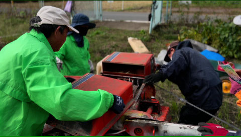 1年間休ませていた脱穀機を引き出し、まずは点検から始まります。0.2リットルのオイルを補充し、機械内部に残っていた昨年の籾殻を丁寧に掃除。エンジンの音が響くと、今年もいよいよ脱穀の季節がやってきたことを実感します。